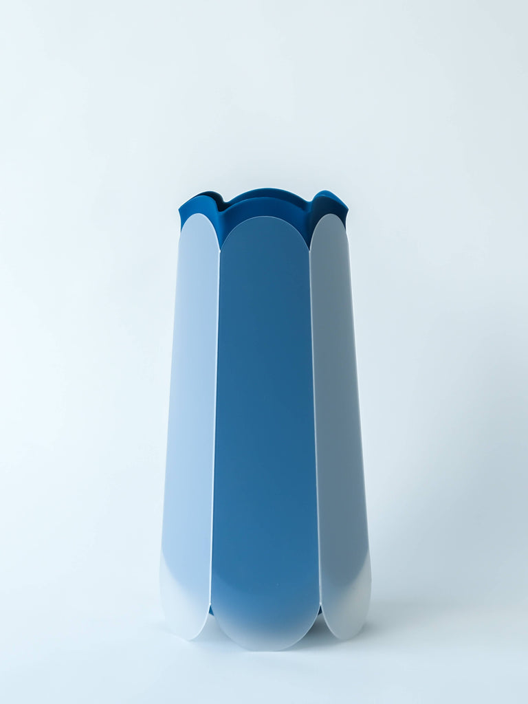 The flat pack form is designed to have the smallest carbon footprint possible during transit. Made from recycled polypropylene and high grade silicone, the materials and the faceted design, allow the vase to fold symmetrically, resulting in a compressed size as little as 5mm thick.
