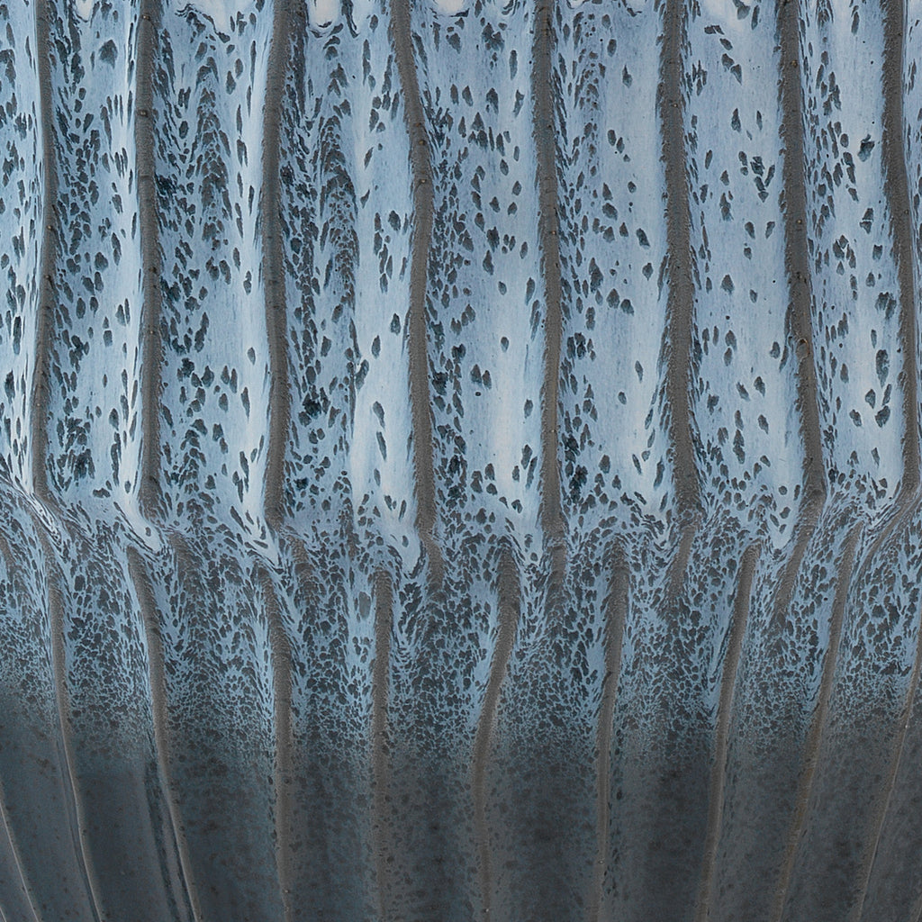 Reminiscent of textural sea algae, the rippled silhouette of this ceramic side table is perfect for any coastal inspired interior. The aquatic shape is glazed with ocean inspired hues that ombre from lighter colors, similar to the color of the ocean water dappled in sunlight, changing to the dark blue tones deep from the ocean depths.