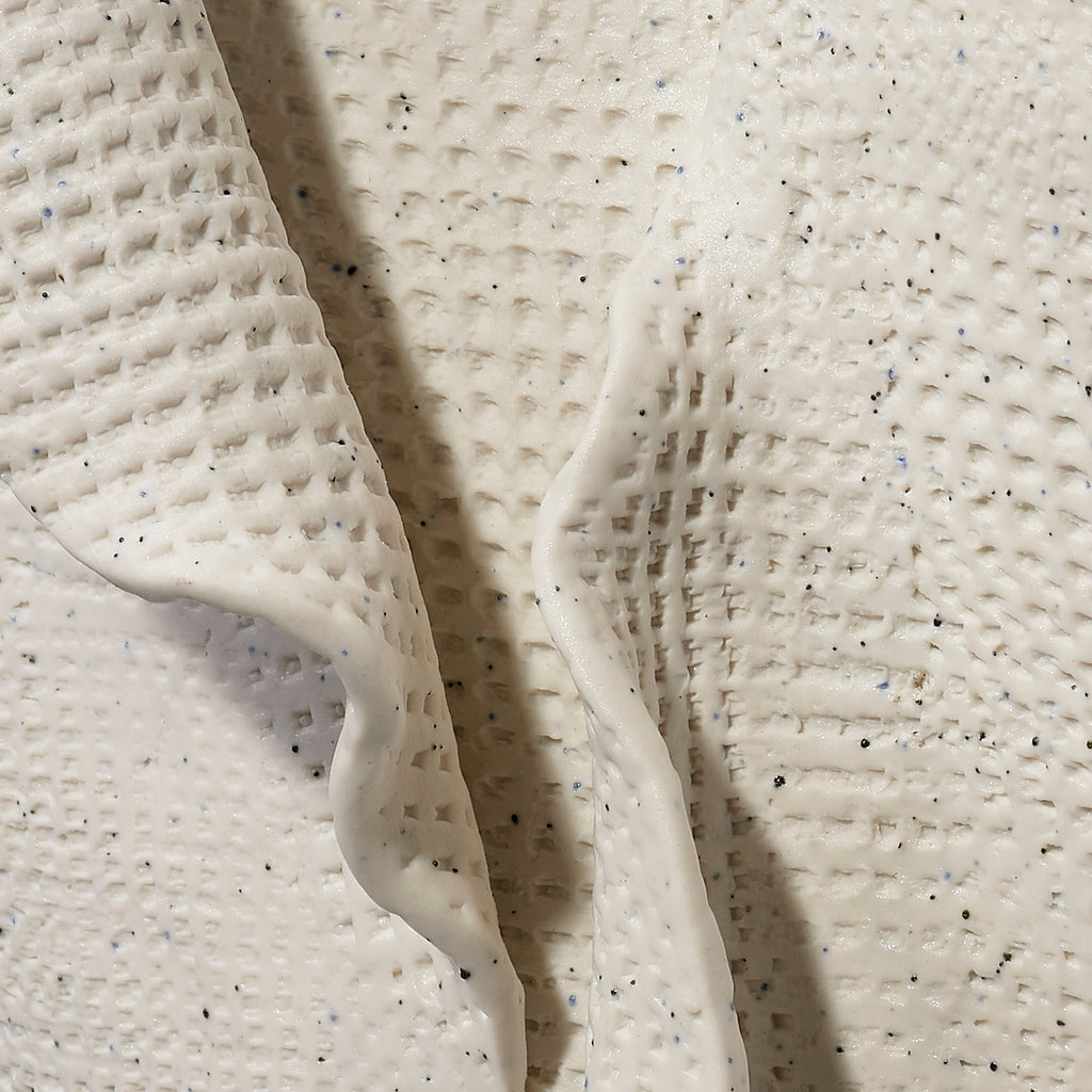 The graceful, petal-like folds and hand-textured matte white porcelain finish makes the Petunia Vase an effortlessly chic accent piece to any table top. Outdoor friendly.
